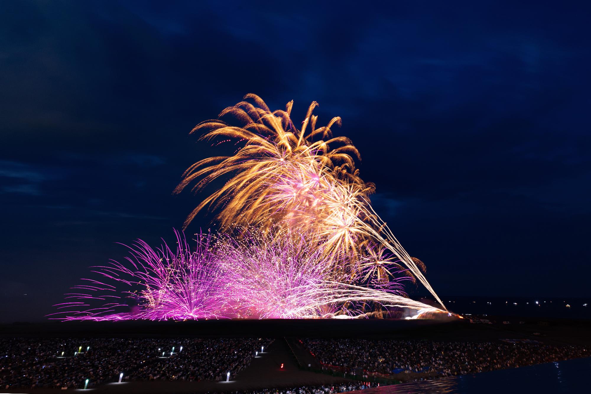 柏崎ならではの広範囲なロケーションを活かした、大迫力なワイドスターマインです!